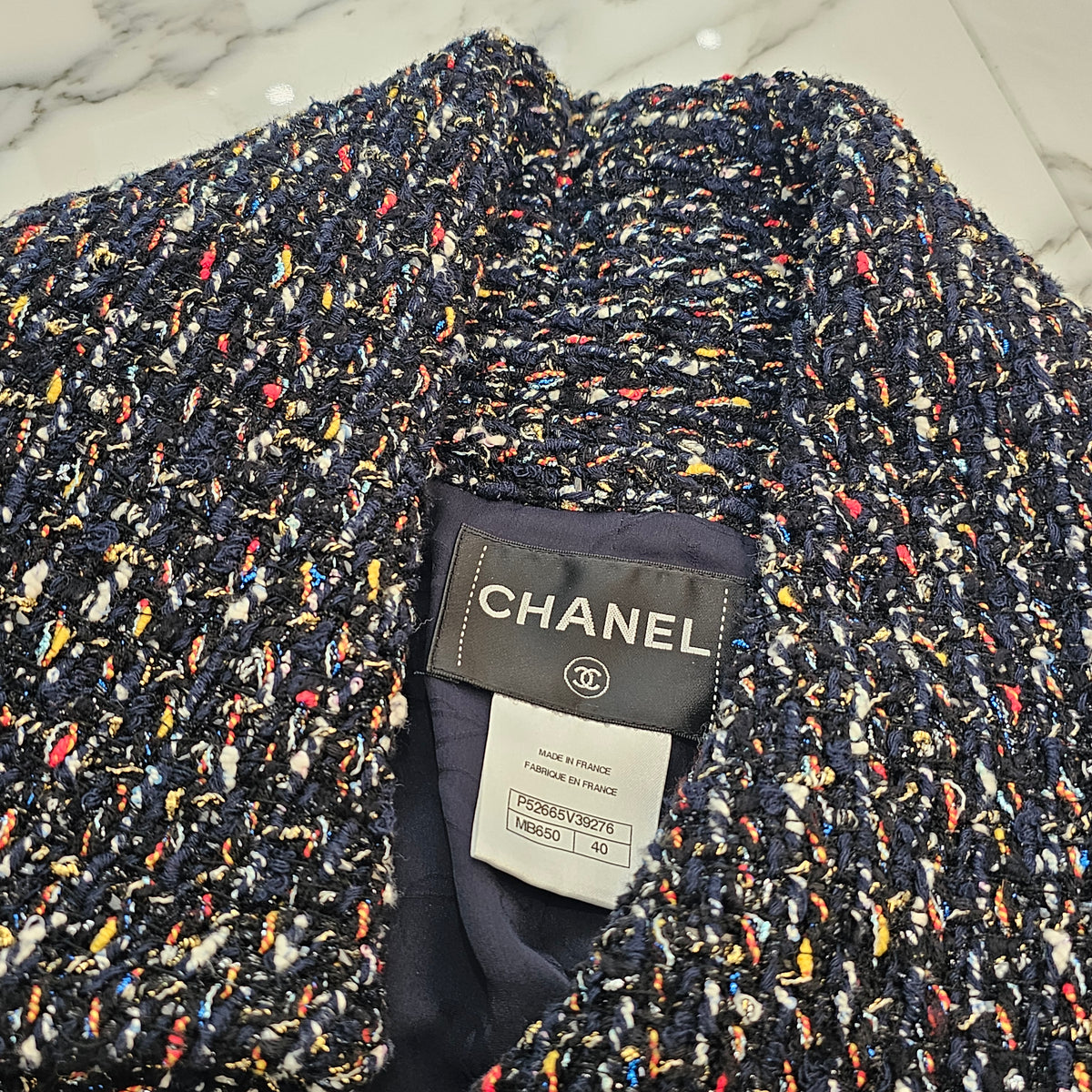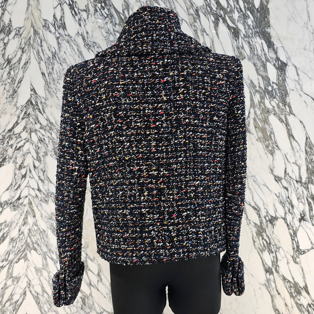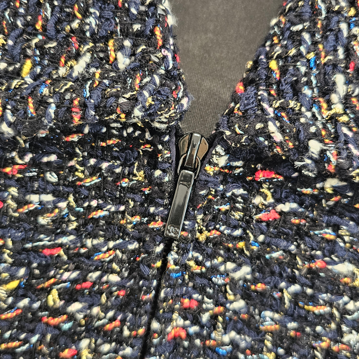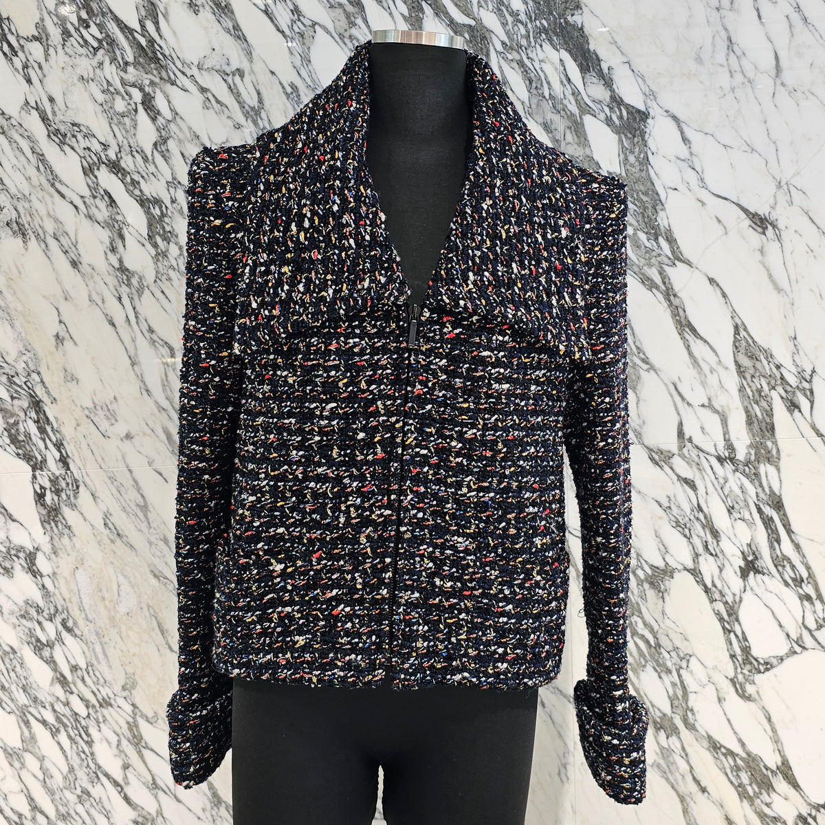 CHANEL 2015 Cruise Black Multi Color Zipper Fantasy Tweed Jacket P52665V39276 Size 40 シャネル 2015クルーズ ブラック マルチカラー ジッパー ファンタジー ツイード ジャケット サイズ40