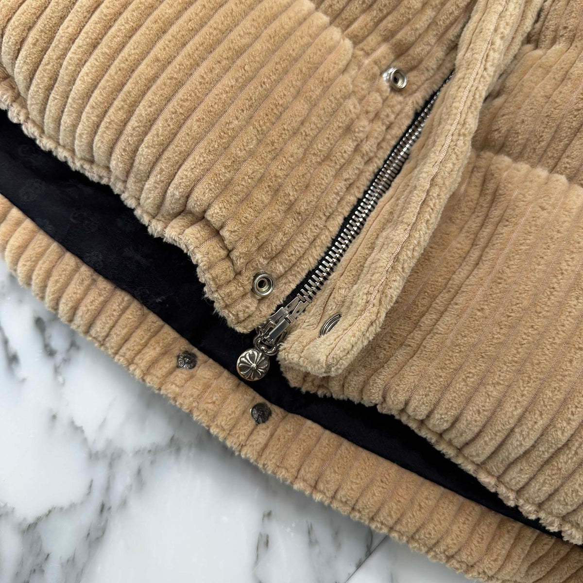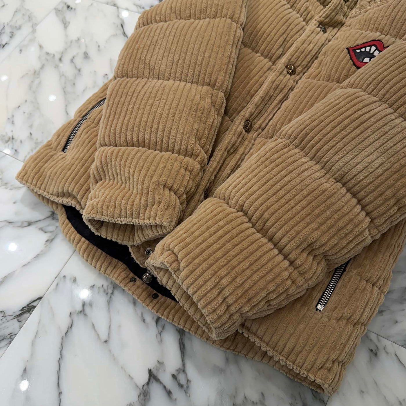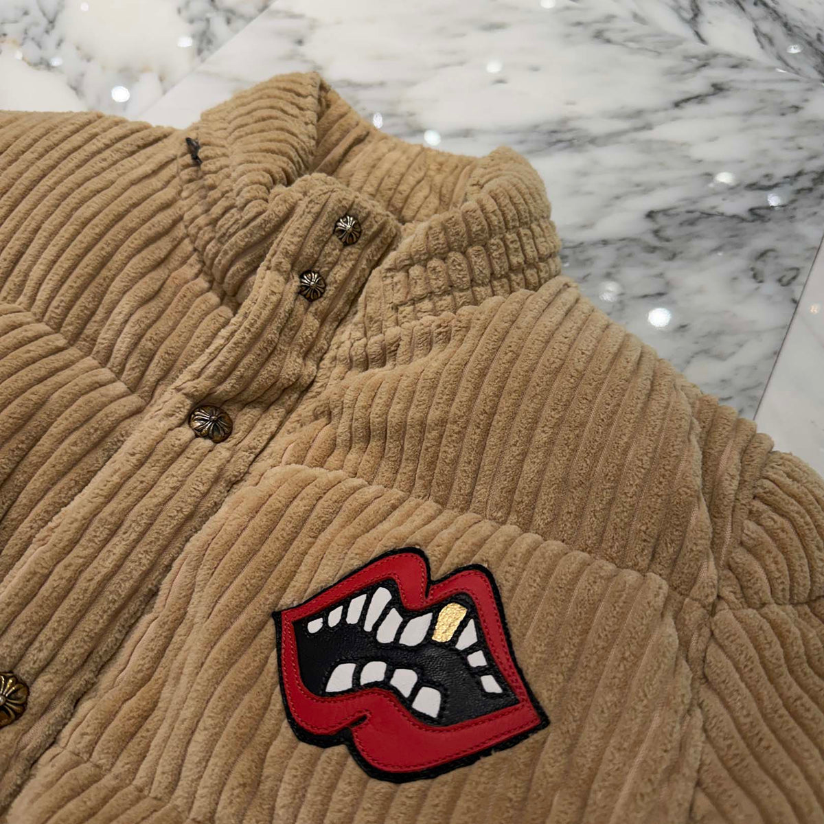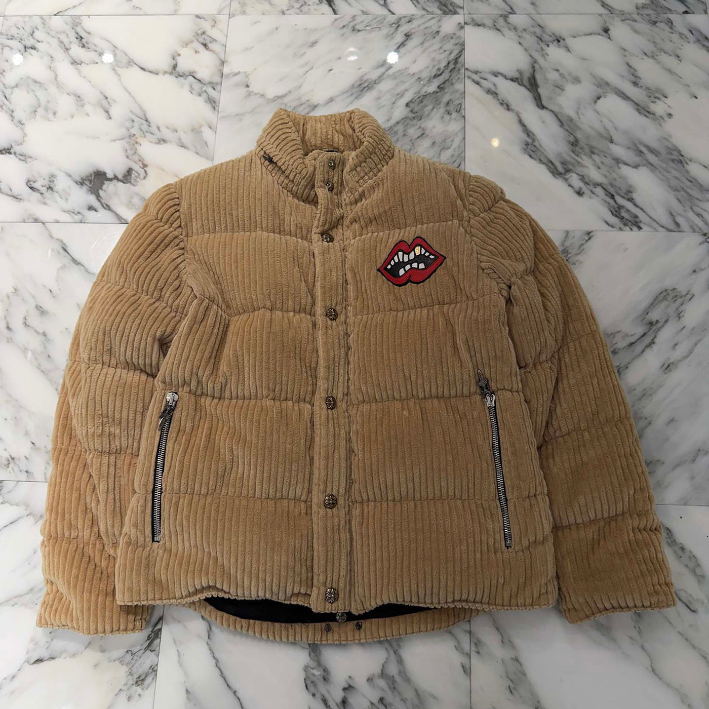CHROME HEART × MATTY BOY Chomper Leather Patch Corduroy Puffer Jacket Size M クロムハーツ × マッティボーイ チョンパーレザーパッチ コーデュロイ パファージャケット サイズM
