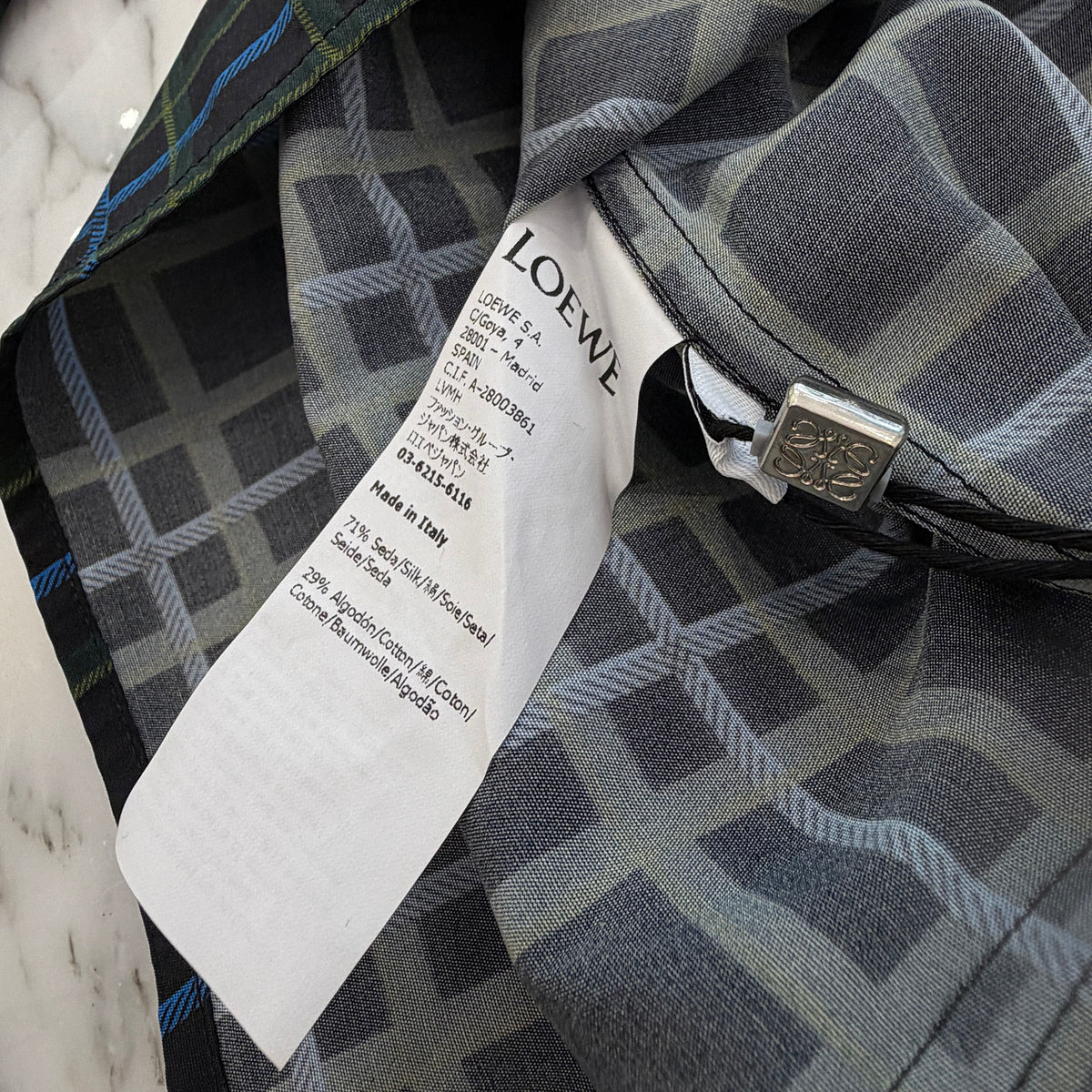 LOEWE 2022SS Anagram Stamp Check Shirt In Silk And Cotton H526Y05W77 Size 39 ロエベ アナグラム スタンプ チェック シャツ サイズ39